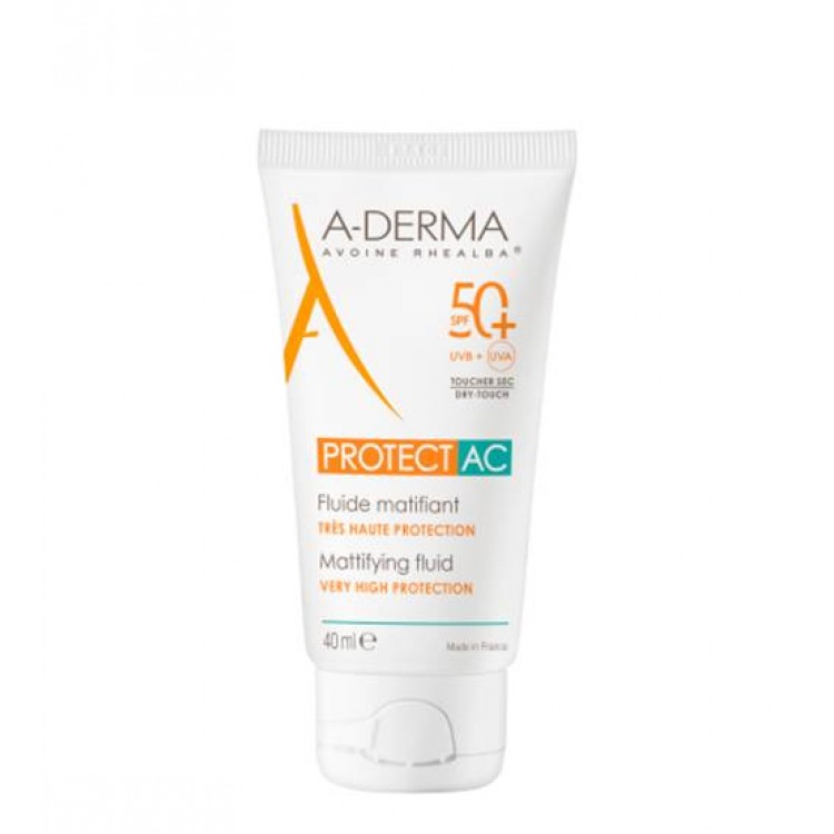 A-Derma Protect AC Fluido Matificante SPF50+ proteção muito elevada foi especificamente desenvolvido e testado para as peles de tendência acneica. Para além de proteger dos efeitos nefastos dos raios UV, reforça a barreira cutânea desequilibrada e promove as defesas celulares contra os raios UVA. Contém ácido glutâmico para atuar sobre o excesso de sebo, numa textura toque seco, rico em pós matificantes para um acabamento mate e não gorduroso. É que, para as peles oleosas de tendência acneica, é necessário mais do que um simples protetor solar, é preciso uma resposta direcionada. Inovação solar patenteada, fruto de 7 anos de investigação: o Barriestolide®, proveniente do Óleo de Plântulas de Aveia Rhealba®, para reforçar as peles frágeis e diminuir o seu nível de vulnerabilidade face à agressão dos raios UV.Associado a um sistema de filtros patenteado, com apenas 4 filtros, protege as peles frágeis dos raios UV. Resistente à água. Rosto. Adulto. Peles oleosas e de tendência acneica. Textura "toque seco", rica em pós matificantes para um acabamento mate e não gorduroso.