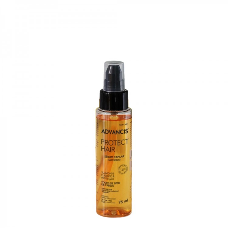 A fórmula de Advancis Protect Hair Sérum Capilar foi desenvolvida com óleos de calêndula e de argão para um cabelo cuidado, brilhante e macio.