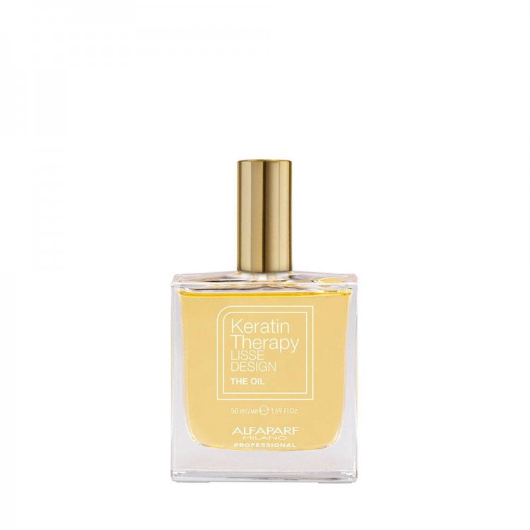 Alfaparf Keratin Therapy Lisse Design The Oil é um elixir efeito seda. A fórmula, enriquecida pelo precioso óleo amazónico de babaçu, torna os cabelos sedosos e macios. Ideal para proteger os cabelos do aparecimento de pontas duplas e combater a desidrata