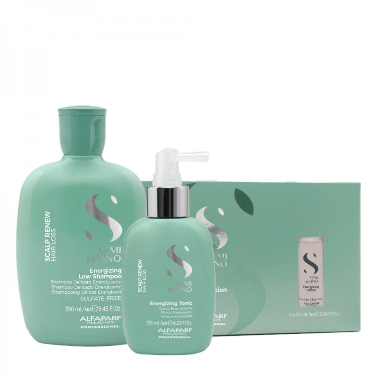 Alfaparf Milano Semi Di Lino Scalp Renew Energizing Low Shampoo 250ml: Um tratamento de regeneração que contribui para a prevenção da perda de cabelo, com a ação energizante, limpa o couro cabeludo respeitando a estrutura do cabelo. Uma ação estimulante intensa para prolongar a vida do folículo e aumentar a sua proliferação. Um complexo que atua diretamente sobre a papila dérmica, favorecendo o crescimento de cabelo mais forte e mais resistente.