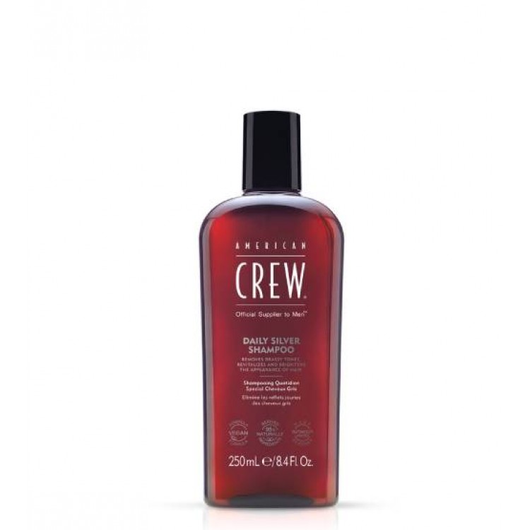 American Crew Daily Silver Shampoo revitaliza e ilumina a aparência dos cabelos grisalhos. A nova e aprimorada fórmula remove os tons acobreados enquanto hidrata e condiciona levemente o cabelo, sem pesar.