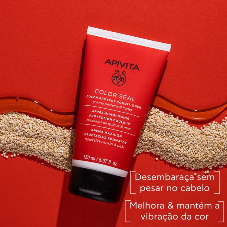 Apivita Color Seal Condicionador Protetor de Cor 150ml: Shampoo protetor da cor indicado para cabelos pintados que hidrata e ajuda a restaurar o cabelo, ao mesmo tempo que mantém e prolonga o brilho e a intensidade da cor.