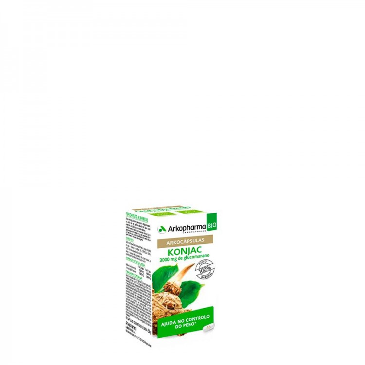 Arkocápsulas konjac bio é um suplemento alimentar à base de konjac, rico em glucomanano. O glucomanano, no âmbito de um regime alimentar de baixo valor energético, contribui para a perda de peso. O efeito benéfico é obtido com uma dose diária de 3g de glucomanano em três doses de 1g cada, juntamanete com 1 a 2 copos de água, antes das refeições e no âmbito de um regime alimentar de baixo valor energético.