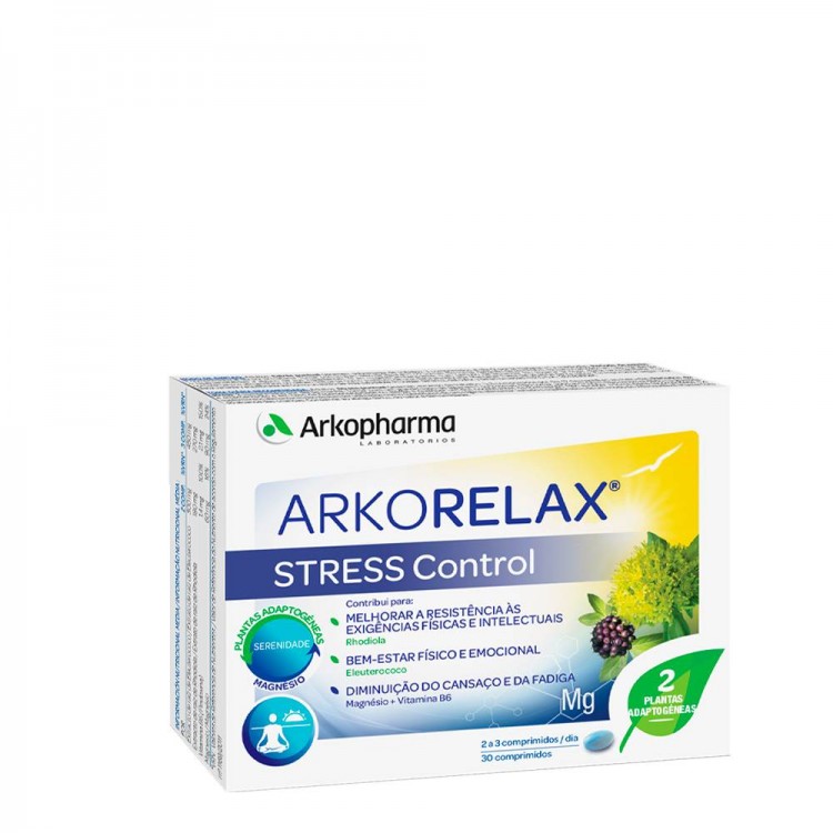 Arkorelax Stress Control é um suplemento alimentar à base de extratos de plantas adaptogéneas, de magnésio e de vitamina B6. A rhodiola contribui para melhorar a resistência às exigências físicas e intelectuais. O eleuterococo contribui para o bem-estar físico e emocional. O magnésio e a vitamina B6 ajudam na diminuição do cansaço e da fadiga.
