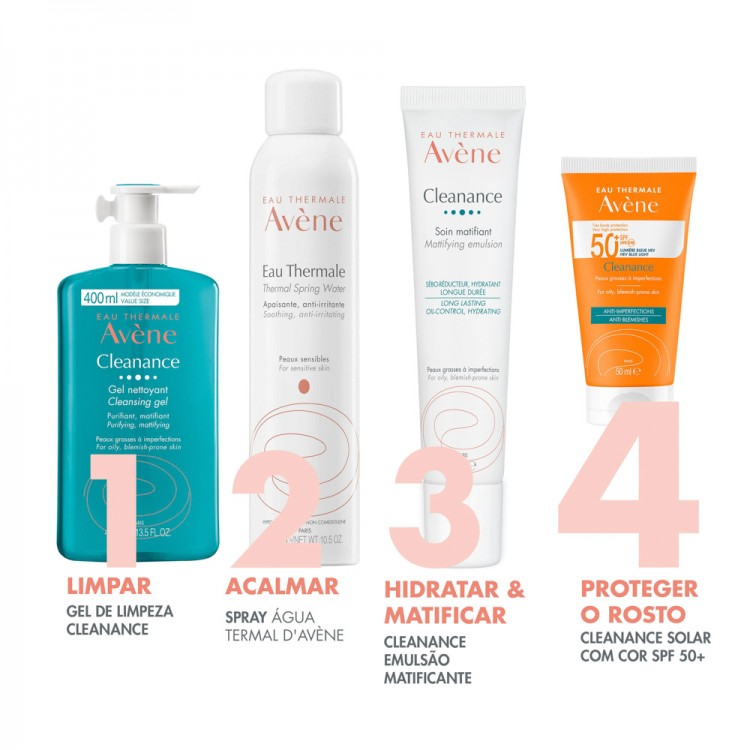 Avène Cleanance Solar SPF50+ 50ml: O protetor solar Cleanance Solar 50+ oferece uma proteção solar diária de espectro muito amplo que protege contra os raios UV e contra a luz azul, que acelera o envelhecimento da pele, até 450 nm