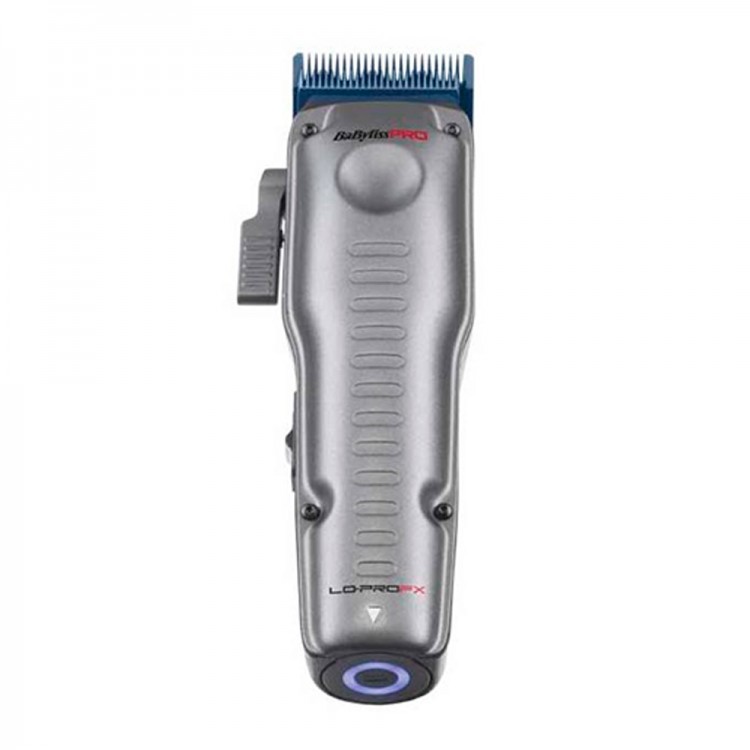 A máquina de corte de cabelo cinzenta FX ONE inclui a nova bateria intercambiável com um botão de desbloqueio rápido. Oferece um novo motor N1 Brushless com rolamentos de esferas duplos para maior eficiência. Vem equipada com a nova lâmina azul ultra-fina Metal Injection Molding (MIM), com um reservatório de óleo para uma lubrificação constante.