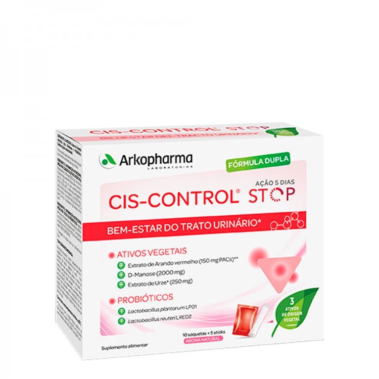 Suplemento alimentar à base de arando-vermelho, urze, D-Manose e probióticos. A urze contribui para o bem-estar urinário e ajuda no normal funcionamento das vias urinárias. Cis-Control Stop fornece, em 2 tomas, 36mg de PAC-A* de cranberry, 1200mg de D-Manose e 250mg de extrato de urze.