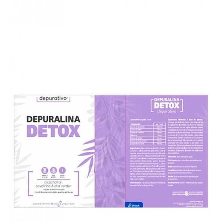 Depuralina Detox é um suplemento alimentar com ação depurativa e sabor a ananás. Ajuda a controlar o metabolismo das gorduras, contribui para o conforto digestivo, ajuda a eliminar a água através dos rins e do trato urinário promovendo a melhoria das defesas do organismo.