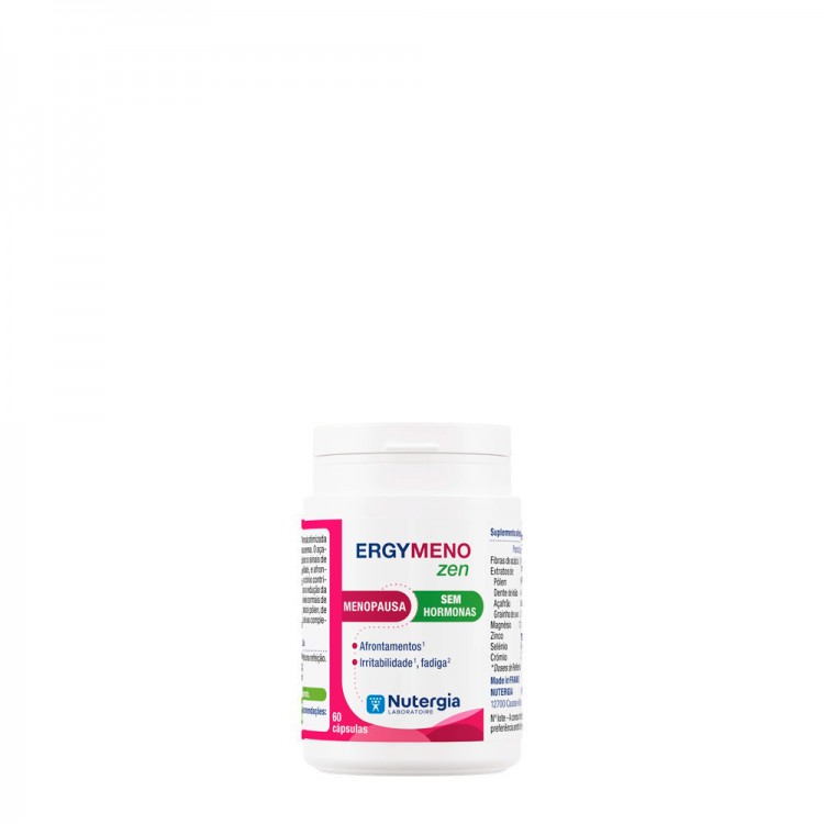 Ergymeno Zen é uma fórmula natural e sem hormonas, ideal para mulheres na menopausa. Com açafrão para aliviar irritabilidade e afrontamentos, inclui ainda pólen, dente-de-leão e grainhas de uva. Enriquecida com 6 vitaminas e 4 minerais, como magnésio e vitamina B6, apoia o sistema nervoso, reduz o cansaço e equilibra a atividade hormonal. O crómio regula a glicémia, enquanto magnésio e zinco fortalecem os ossos. Zinco e selénio ajudam a manter cabelos saudáveis. Sem soja, corantes ou conservantes, é uma solução eficaz para este período da vida.