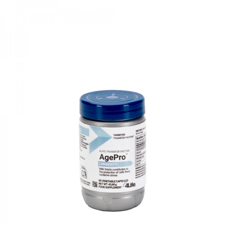 O AgePro é formulado com cálcio AKG e extrato de cardo-mariano para uma potente proteção antioxidante, o AgePro contém ingredientes que ajudam a acrescentar vitalidade aos teus anos.