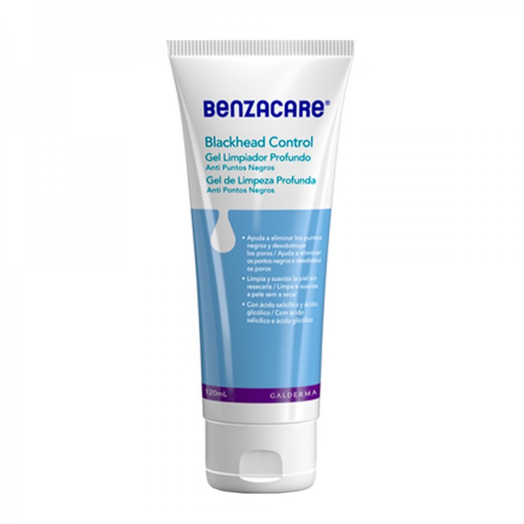 Gel de limpeza que contém ácido salicílico, ácido glicólico e microesferas exfoliantes.