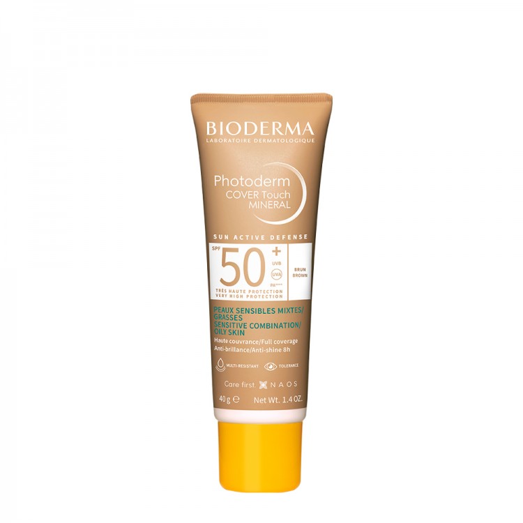 Bioderma Photoderm COVER Touch Castanho SPF50+ 40g: Fotoproteção muito elevada com elevada cobertura, controlo da oleosidade e efeito matificante. Para pele mista a oleosa com imperfeições.