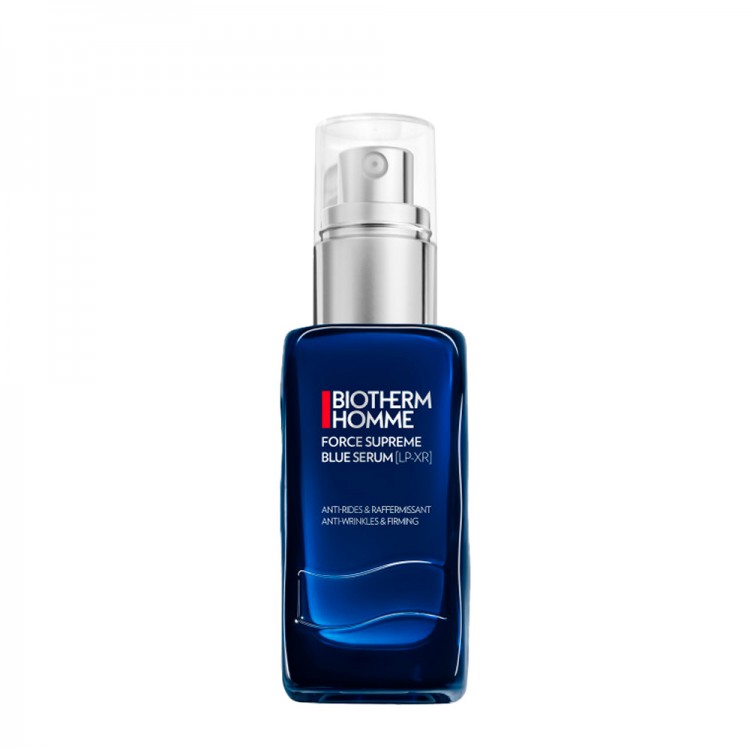 Biotherm Force Supreme Blue Sérum [LP-XR], é um sérum anti-envelhecimento para homem. Repara 10 sinais de envelhecimento, deixando a pele com um aspeto mais firme e jovem. A sua fórmula é enriquecida com Life Plankton™, que contém 35 nutrientes para melhorar a recuperação das células da pele, Pro-Xylane para dar firmeza, e Pro-Retinol e frações de Péptidos para definir o contorno do rosto.