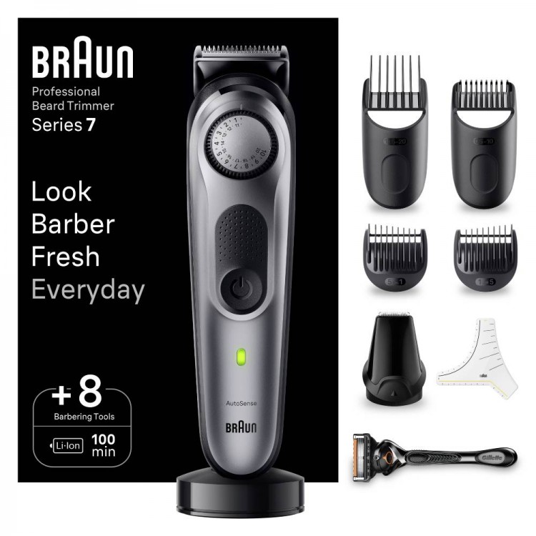 Braun Series 7 Aparador de Barba Profissional: Resultados de barbeiro em casa com o Aparador de Barba Profissional Series 7 da Braun. Precisão em cada passagem com a ProBlade mais afiada.