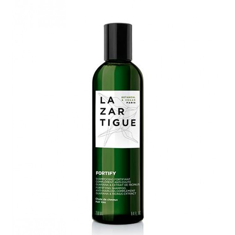 O shampoo fortificante de Lazartige permite fortificar o cabelo fragilizado e vem completar a ação de um cuidado anti-queda específico. Oferece ao cabelo elementos essenciais à sua vitalidade graças aos benefícios botânicos do guaraná que reforça a fibra, dinamiza o couro cabeludo e estimula o crescimento. Rico em extrato de rícino, melhora a circulação do couro cabeludo para criar ambiente favorável ao crescimento do cabelo. Dia após dia, o cabelo fica mais resistente e forte.
