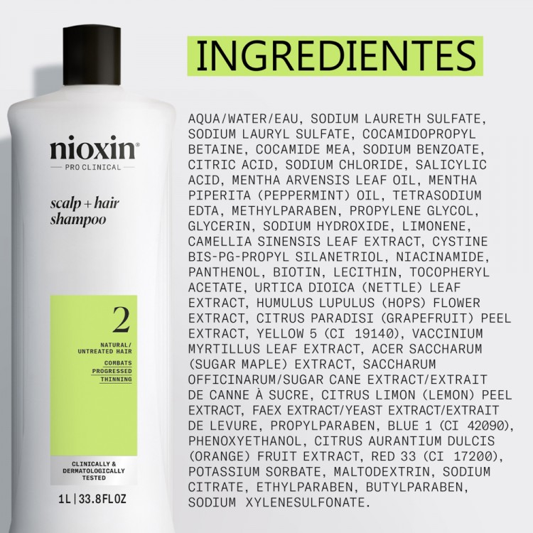 Nioxin Sistema 2 Shampoo para Cabelo Natural com Perda de Densidade Avançada 1000ml