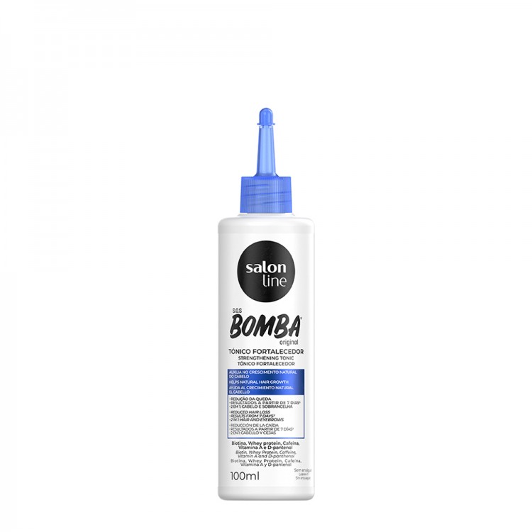 O SOS Bomba Tónico Capilar Fortalecedor da Salon Line nutre e fortalece o cabelo e sobrancelhas, enquanto estimula o crescimento saudável dos fios.