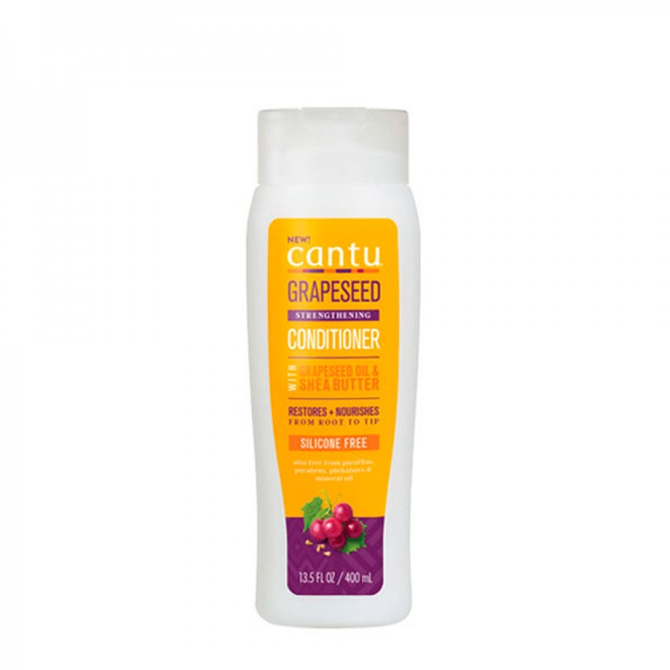 O Condicionador Fortalecedor de Semente de Uva é feito com fórmula de manteiga de karité e é infundido com óleo de semente de uva e óleo de abacate para nutrir e hidratar cabelos secos e quebradiços. Reduz a quebra e promove o crescimento saudável do cabelo a cada uso. Sem sulfatos ou silicones, feito pensando nos cabelos com caracóis, afro e ondulados.