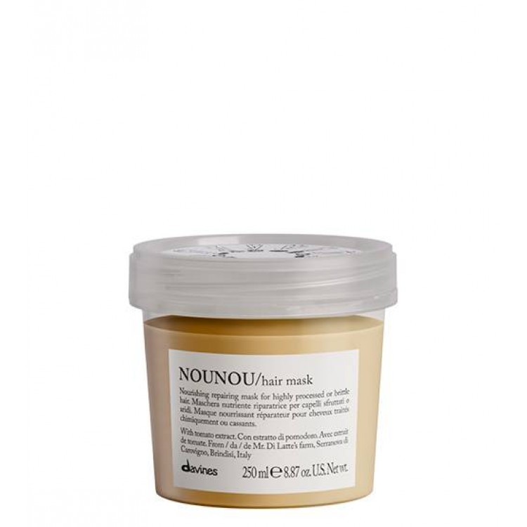 Como aplicar Davines Nounou Hair Mask 250mlAplicar sobre o cabelo seco com a toalha depois do Nounou Shampoo. Deixar atuar 10-15 minutos, pentear e enxaguar. Proceder ao styling.