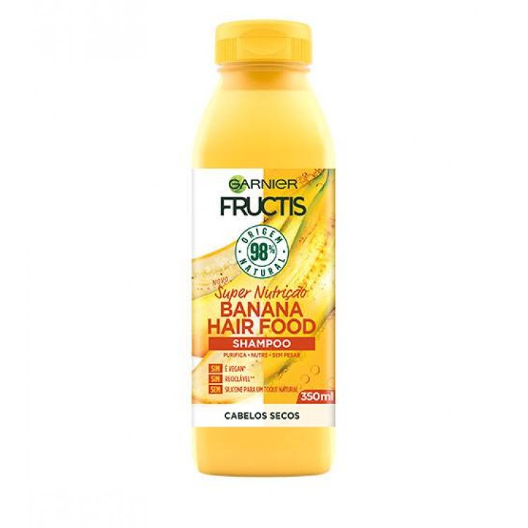 O Shampoo Fructis Hair Food Banana com uma fórmula vegan e com 98% de ingredientes de origem natural deixa o cabelo purificado e nutrido, sem pesar.