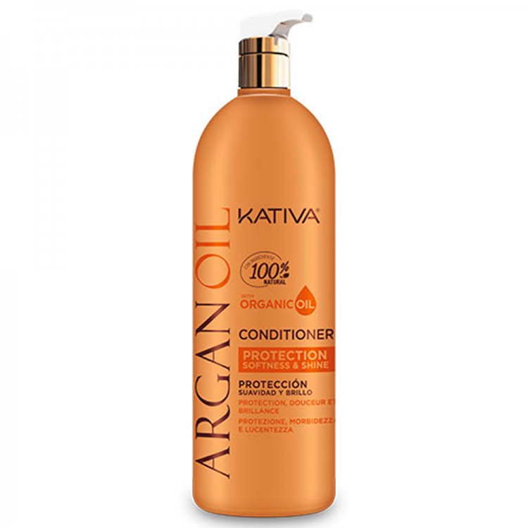 Kativa Argan Oil Condicionador 1L: Condicionador livre de sal e sulfato com óleo de argão orgânico. Evita o ressecamento.