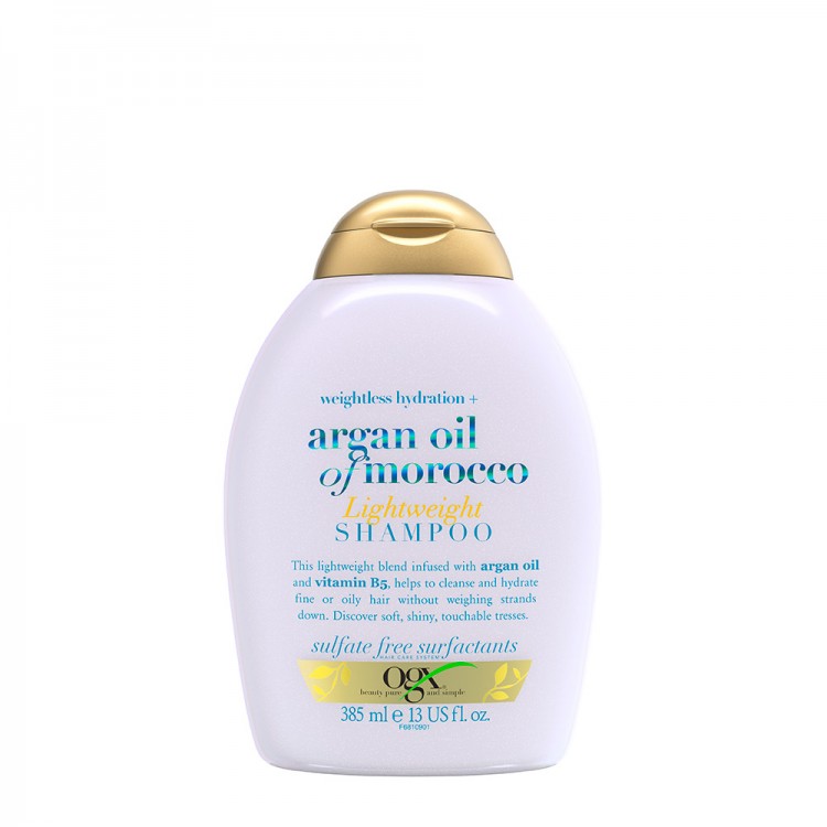 OGX Argan Oil Morocco Shampoo Ligeiro 385ml: Esta gama fortalece os folículos e as células do couro cabeludo, proporcionando um aspeto mais saudável a qualquer tipo de cabelo.