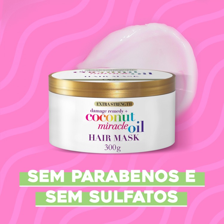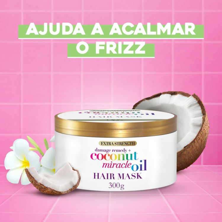 OGX Coconut Miracle Oil Força Extra Máscara 300g: Esta máscara extra nutritiva ajuda a prevenir o frizz, suavizar e revitalizar o cabelo danificado.