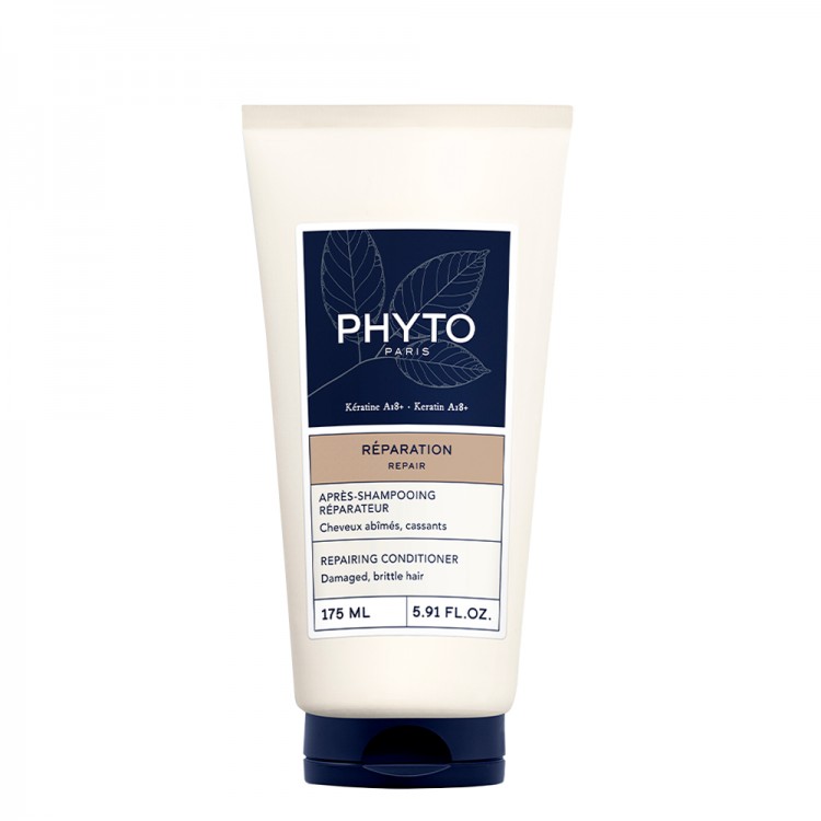 Phyto Réparation Condicionador 175ml: O condicionador que repara e reforça a fibra capilar enquanto desembaraça. O condicionador de reparação repara e fortalece o cabelo danificado e evita a quebra enquanto desembaraça. A fórmula principal contém "Querati