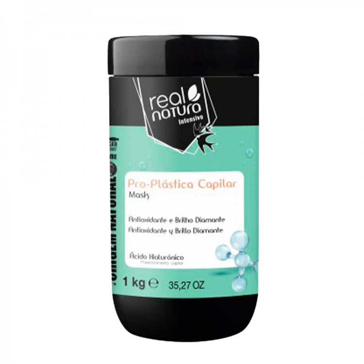Real Natura Pro-Plástica Capilar Máscara Sem Sal 1000ml: repara e fortalece os fios danificados, proporcionando um efeito de plástica capilar instantâneo.