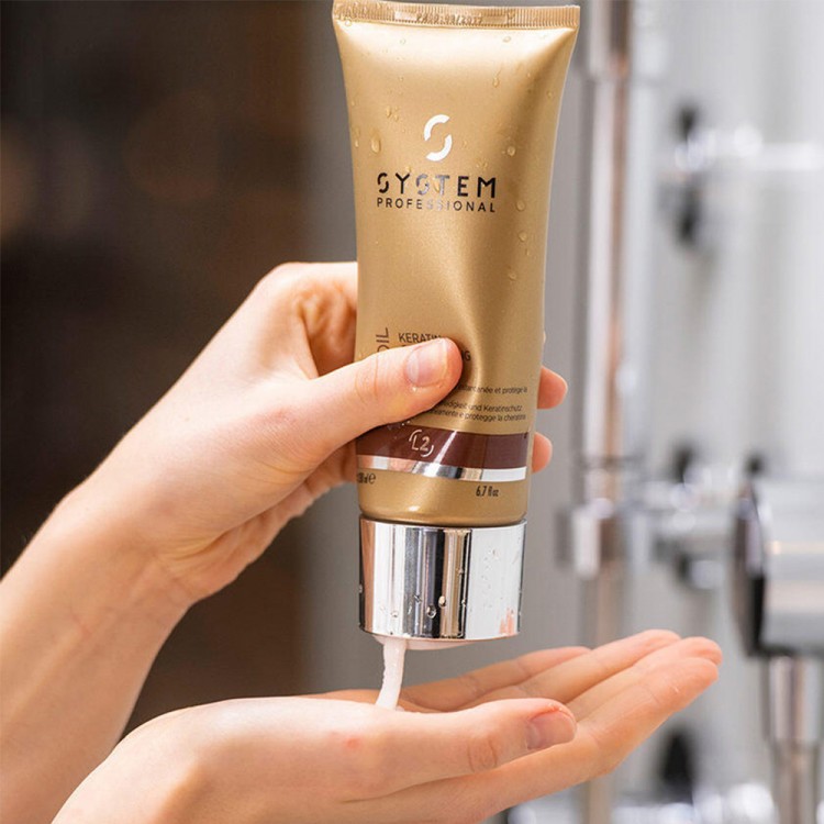 Protege a queratina e reforça a estrutura da fibra capilar.