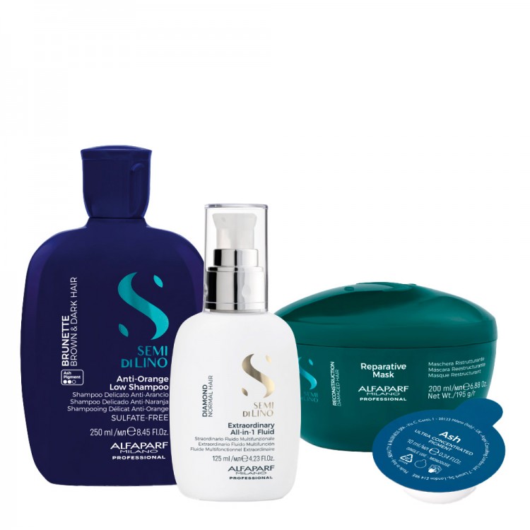 Lava delicadamente, neutraliza os indesejáveis reflexos alaranjados, proporciona nutrição profunda e revitaliza a fibra capilar. Para cabelos castanhos e castanho-escuros, naturais e tratados.
