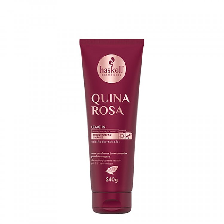 Haskell Quina Rosa Leave-In 240ml: Promove a blindagem dos fios, protegendo os cabelos de agentes externos. É ideal para o processo de escovação, pois facilita o deslizamento da escova nos cabelos.