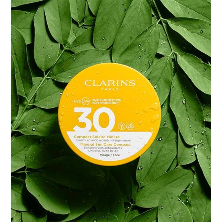 Como aplicar Clarins Compact Solaire Minéral Visage SPF30 11.5mlAplicar uma quantidade generosa de forma frequente e uniforme no rosto. Aplicar 15 minutos antes da exposição ao sol. Depois, renovar a aplicação a cada 2 horas, ou depois de nadar, transpirar ou secar-se. Não esquecer o chapéu e os óculos de sol e evitar as horas de maior exposição solar (das 11 horas às 16 horas). Não expor as crianças com menos de 3 anos ao sol nesse intervalo de tempo.