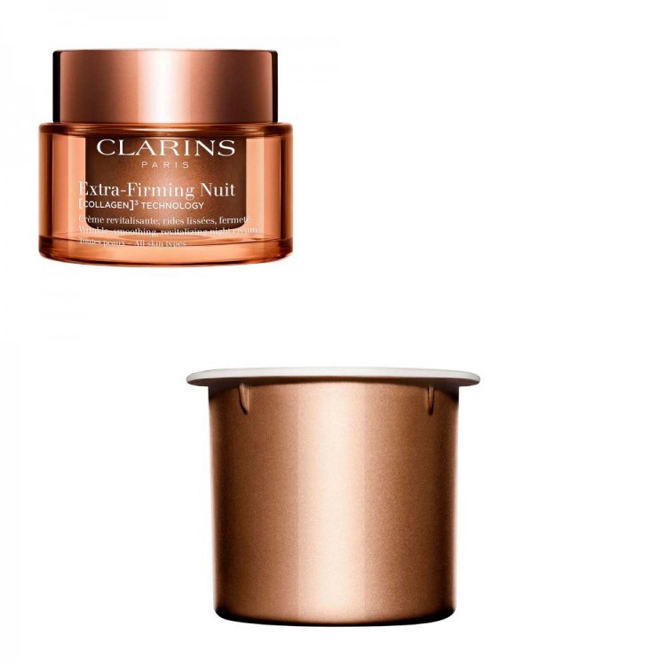 A Investigação Clarins cria um cuidado de firmeza cujos poderosos princípios ativos ajudam a aumentar as reservas de colagénio para uma pele mais firme em 7 dias. Um creme de noite para firmeza da nova geração. A sua tecnologia exclusiva [COLLAGEN]³ TECHNOLOGY tem uma ação direcionada ao colagénio graças ao seu poderoso trio de princípios ativos: polipeptídeos de colagénio, extrato de nogueira-pecã, extrato de Mitracarpus. A niacinamida, uma molécula de rejuvenescimento, ajuda a melhorar a homogeneidade da pele e contribui para a sua luminosidade. A fórmula, composta por mais de um milhão de péptidos de abacate, ajuda a pele a regenerar-se durante a noite. A pele parece repousada, pronta para receber um novo dia.