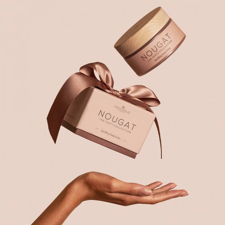 DescriçãoComemora cada dia com uma pitada de brilho e uma sensação de luxo! Criado para evocar emoção a quem o detém, o Nougat Sparkling Body Butter é uma mousse orgânica que derrete em contacto com a pele. Uniformiza o bronzeado e deixa a pele radiante.