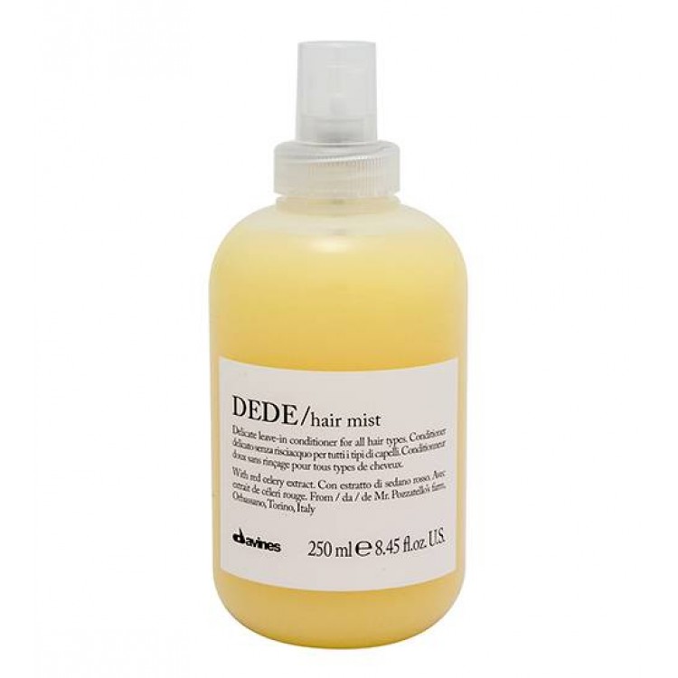 Davines Dede Hair Mist é um shampoo delicado, ideal para lavagens frequentes. Para cabelo normal a fino. Sem sulfatos nem parabenos. Com extrato de Aipo Vermelho de Orbassano, Presidio Slow Food. Rico em sais minerais, desenvolve uma ação remineralizante