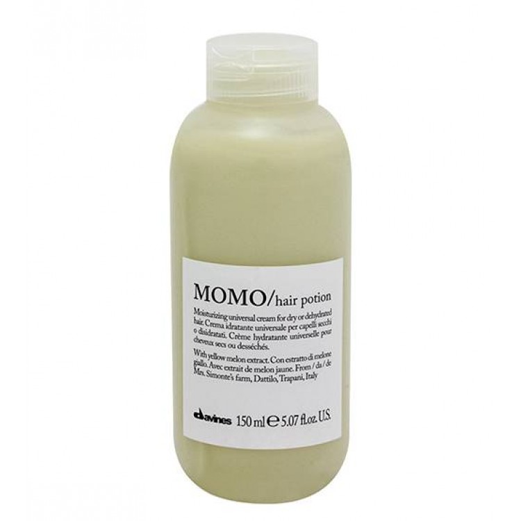 Como aplicar Davines Momo Hair Potion 150mlPode ser aplicado sobre o cabelo seco com a toalha principalmente em conjunto com os produtos da linha Momo, ou depois de qualquer shampoo e condicionador da linha Essential Haircare, ou sobre cabelo seco depois do styling. Textura sedosa e leve sem passar por água.