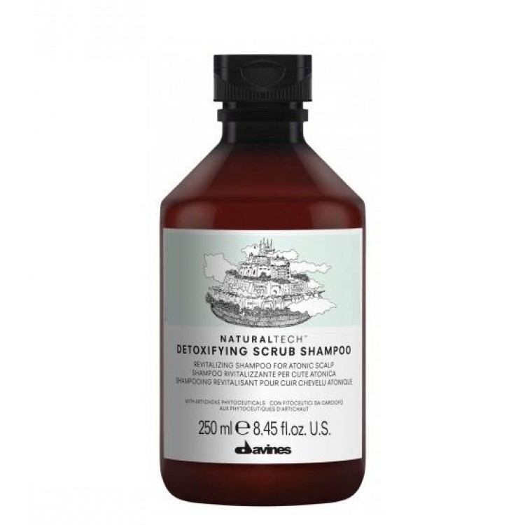Davines Naturaltech Detoxifying Scrub Shampoo é um shampoo revitalizante para cútis atónica. Shampoo de tratamento que graças à combinação de tensioativos delicados de origem natural e esferas de scrub que limpam suavemente a pele com ação antioxidante.