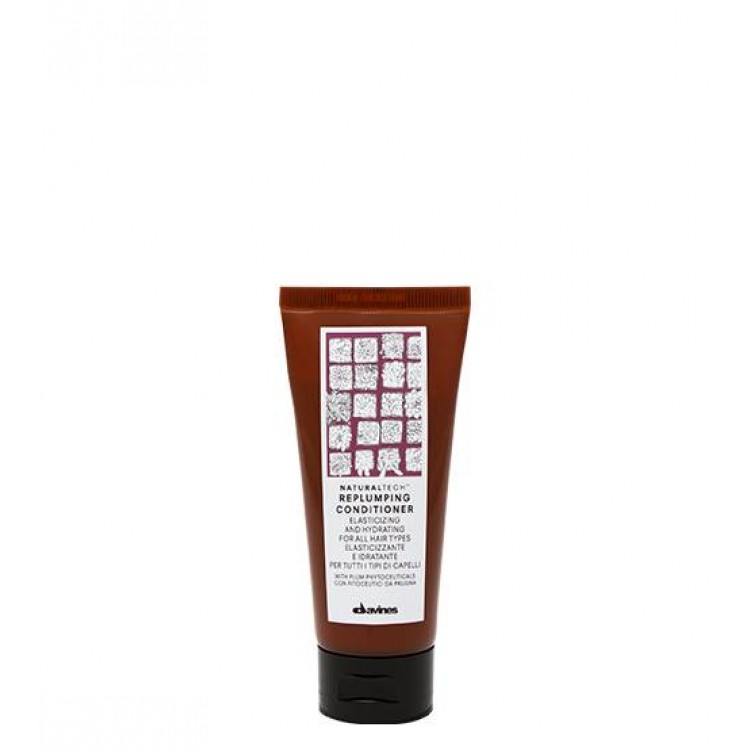 Davines Naturaltech Replumping Conditioner é um condicionador hidratante com efeito elástico formulado para desembaraçar, compactar e dar nova elasticidade ao cabelo. Sem sulfatos nem parabenos.