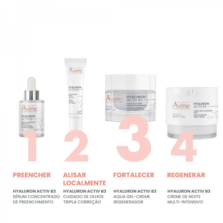 Avène Hyaluron Activ B3 Aqua Gel-Creme Regenerador 50ml: O Aqua gel-creme regenerador celular é concentrado em ácido hialurónico e niacinamida, que estimula as células e prolonga a sua longevidade*.