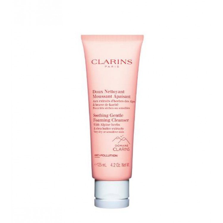 Com extratos de ervas alpinas e manteiga de karité. Ele é o especialista em peles muito secas a sensíveis. É enriquecido com o complexo de suavidade Domaine Clarins (genciana amarela orgânica e erva-cidreira orgânica), bem como extratos de camomila orgânica para acalmar a pele e manteiga de karité orgânica para ajudar a prevenir sensações de desconforto. Deixa a pele limpa e remove suavemente a maquiagem. Graças aos surfactantes suaves, limpa ao mesmo tempo que ajuda a preservar o equilíbrio da microbiota da pele. Todos os tipos de pele.