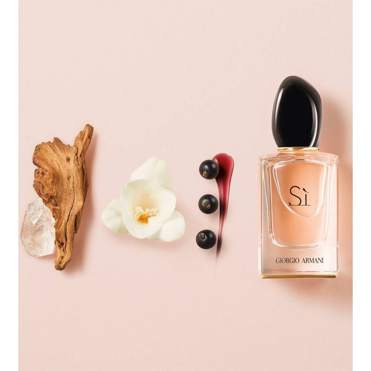 Sì tem como nota de topo o néctar de groselha preta, a frésia e rosa de maio como notas de coração e na sua base notas de madeira e almíscar.
