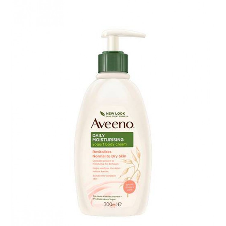Creme Corporal de Iogurte Aveeno® Daily Moisturising fragrância a damasco e mel. A fórmula rica e cremosa com aveia coloidal prebiótica e concentrado de iogurte probiótico melhora o equilíbrio natural da pele para uma pele mais resistente e de aspeto saudável desde a 1ª utilização. Clinicamente comprovado que hidrata e reforça a barreira da pele, revitaliza a pele seca, e hidrata intensamente durante 48 horas.