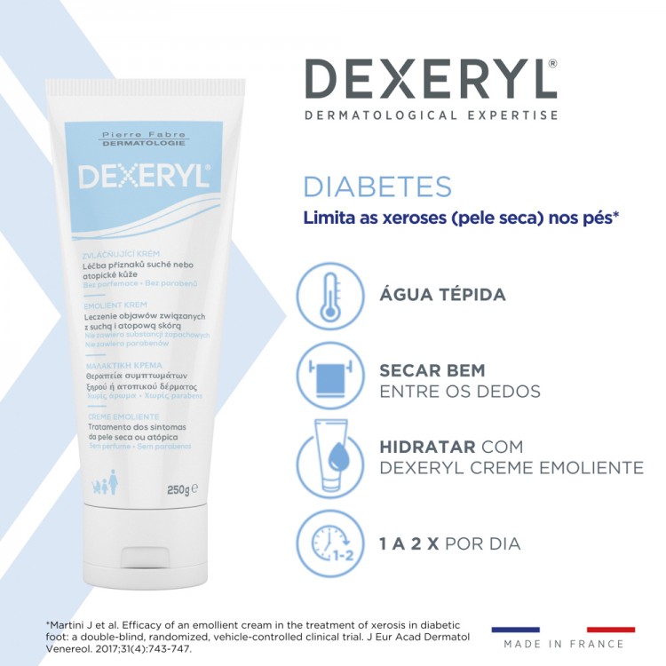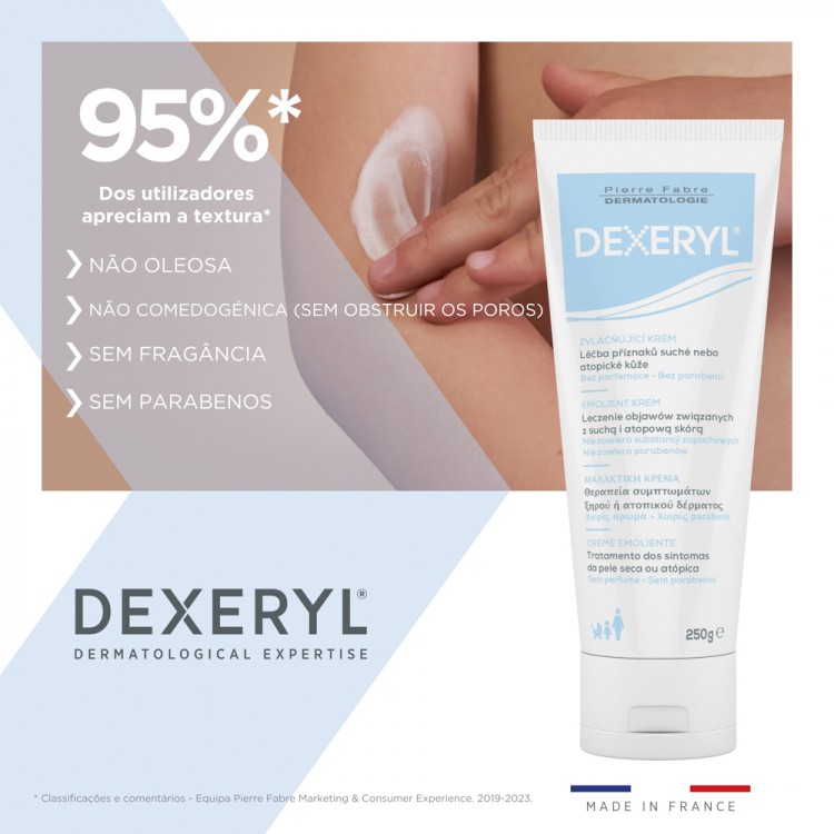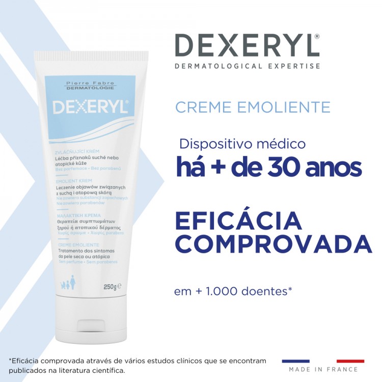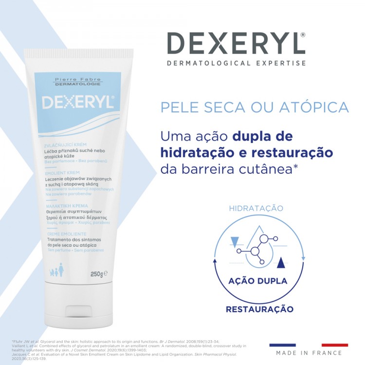 Dexeryl Creme Emoliente 250g: Dexeryl Creme Emoliente é um creme que hidrata intensamente, enquanto acalma e conforta a pele com prurido e irritação. Ideal para pele seca a muito seca, sensível, com xerose ou dermatite atópica.