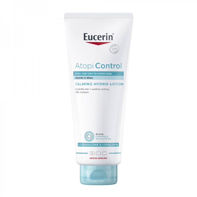 Eucrein Atopi Control Hidro-Loção Apaziguante é um cuidado básico de uso diário, sem perfume, que alivia de imediato o prurido, proporciona hidratação durante 48 horas e restabelece a barreira cutânea. A sua fórmula ultraleve é absorvida em 60 segundos e refresca a pele.