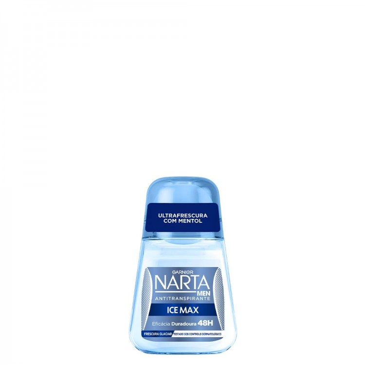 Garnier Narta Men Ice Max Antitranspirante Roll-On 50ml: O antitranspirante em roll-on Ice Max, com a sua fórmula exclusiva, contém o ativo Cyro-Menthol que vai libertando uma frescura intensa ao longo do dia, para uma proteção duradoura.