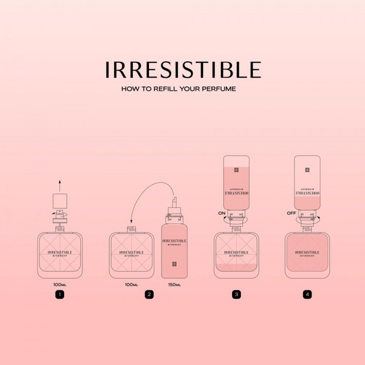 Recarga do frasco de 100ml do perfume Irresistible Eau de Parfum da maison Givenchy. Um aroma feminino irresistível, para mulheres que exalam charme e atração naturalmente.