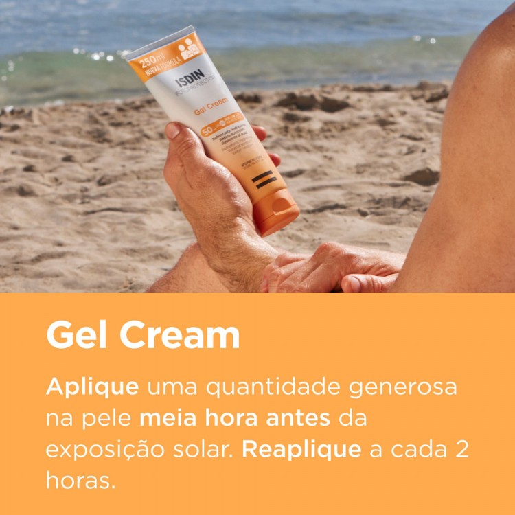 Fotoprotector gel creme para o rosto e corpo, que hidrata como um creme e refresca como um gel. O todo-terreno dos fotoprotetores para toda a família.