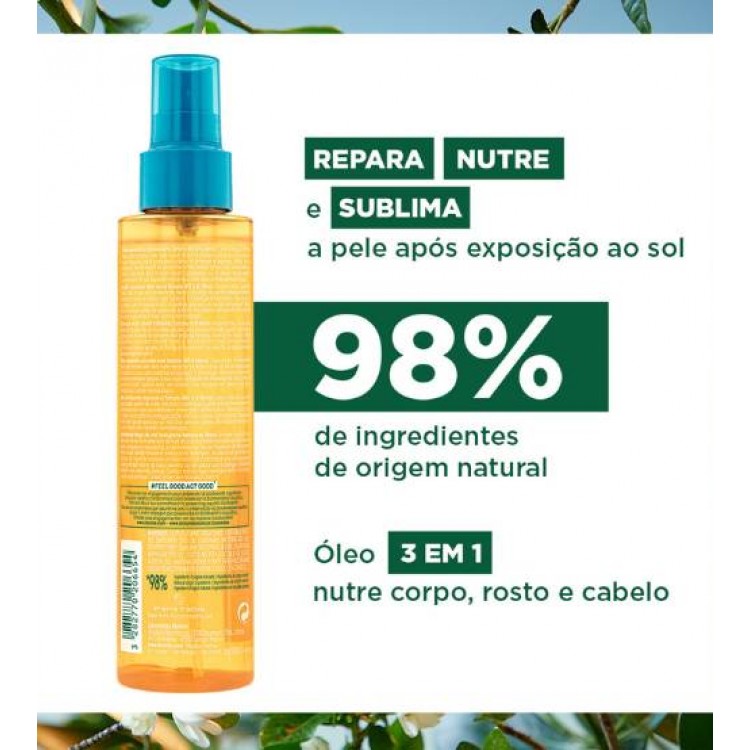 Este óleo não gorduroso realça e prolonga o bronzeado, nutre a pele, repara-a e protege-a do fotoenvelhecimento. Para além de incluir Monoï Orgânico e Óleo de Tamanu, este produto incorpora óleo de cártamo nutritivo e vitamina E antioxidante na sua fórmula. Também pode ser utilizado no cabelo para nutrir profundamente a fibra capilar, que tende a secar após a exposição ao sol.