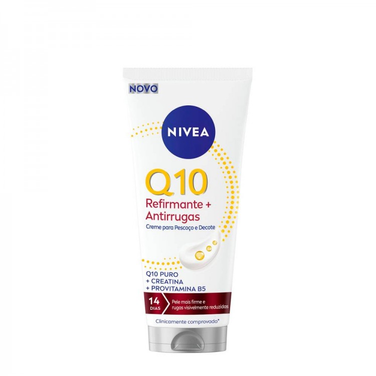 DescriçãoPara uma pele mais macia e com aparência rejuvenescida! Com uma fórmula inovadora com Q10 puro, creatina e provitamina B5, especialmente desenvolvida para a pele delicada do pescoço e peito, este creme, clinicamente comprovado, reduz a visibilidade de rugas nessas áreas.